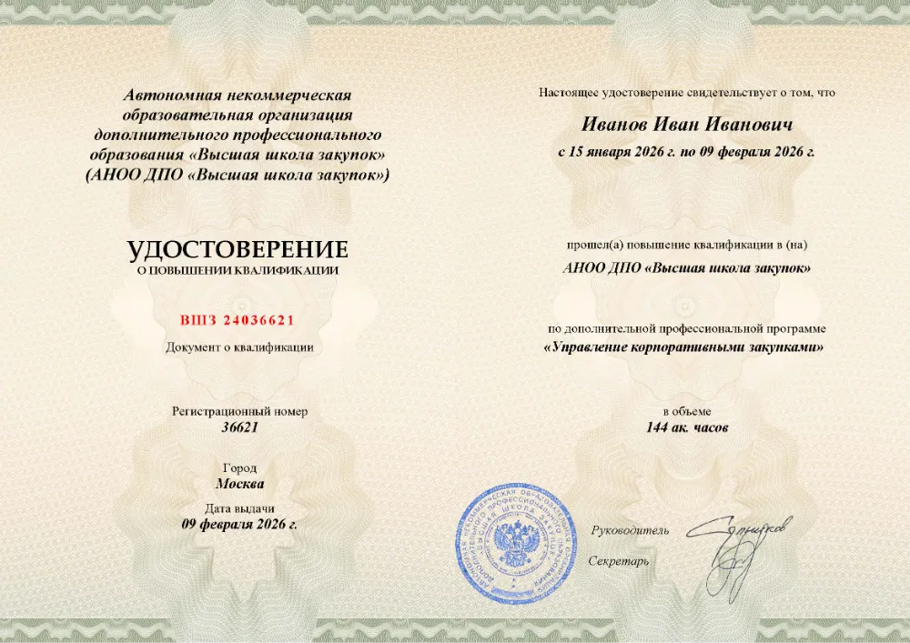 Вы получаете официальные дипломы и удостоверения, полностью соответствующие профессиональным стандартам РФ. Высшая школа закупок в обязательном порядке передает сведения в федеральный реестр ФИС ФРДО. Это подтверждает вашу квалификацию для любого государственного ведомства или крупного агрохолдинга Краснодара.