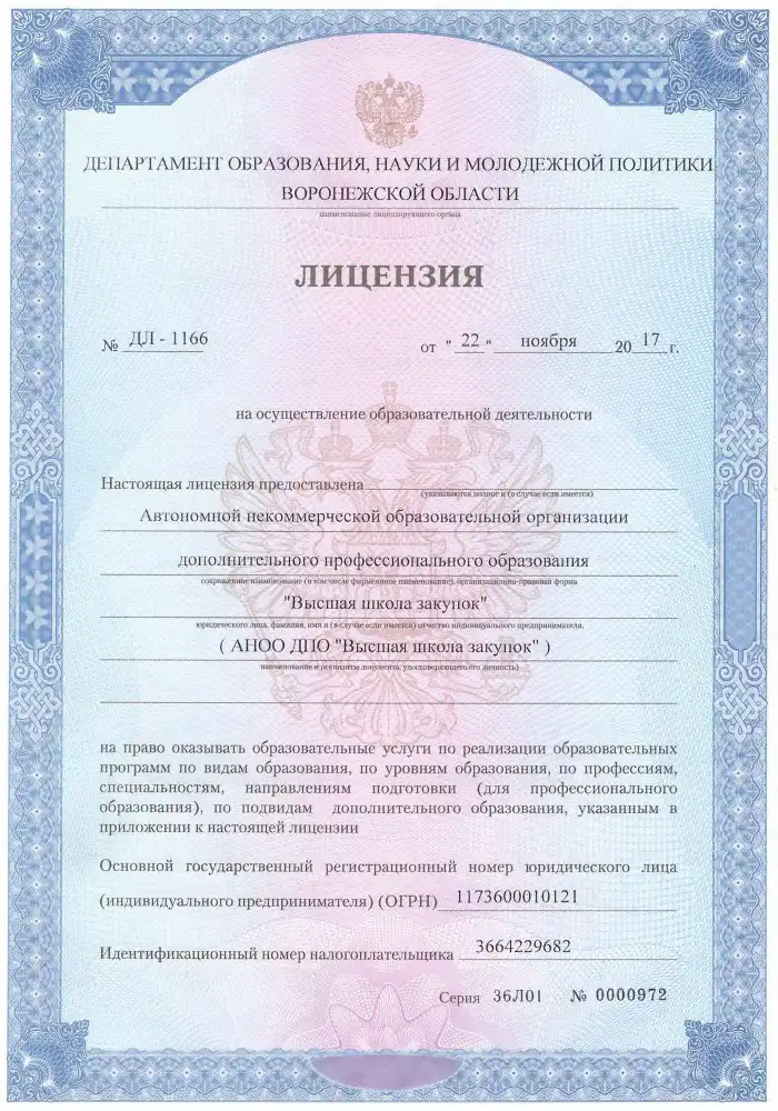Высшая школа закупок (fz44.org) ведет образовательную деятельность на основании бессрочной государственной лицензии. Вы можете проверить актуальность документа по номеру в реестре Рособрнадзора, что гарантирует законность получения образования в Краснодаре в 2026 году.